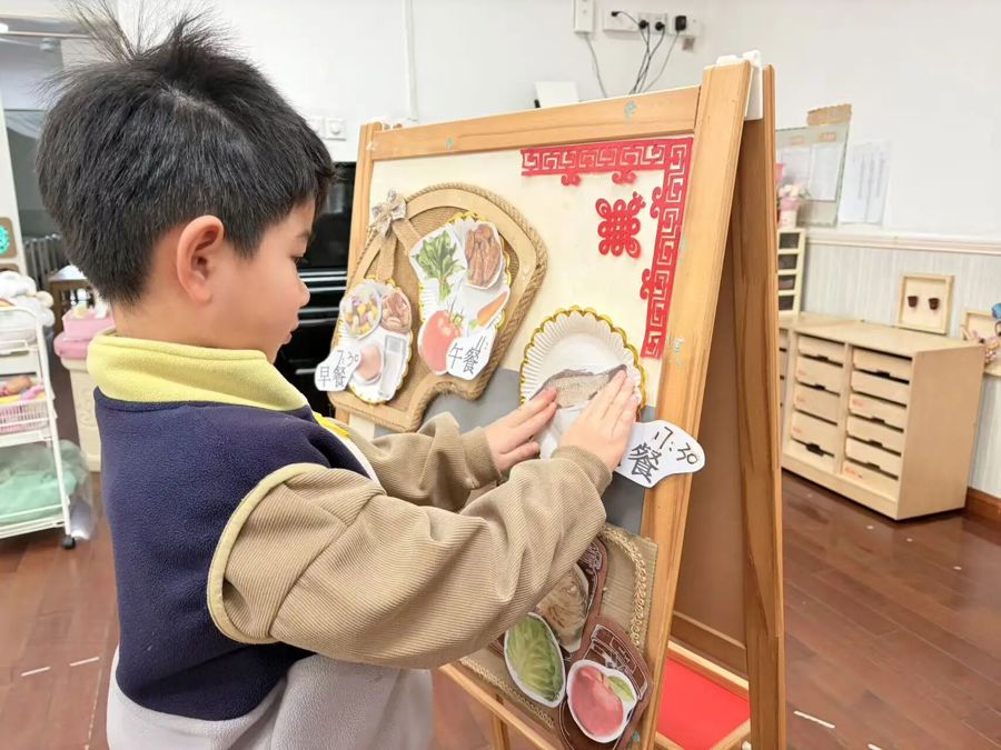 这些看得见的假期改变,其实源于平日里幼儿园里细水长流的健康饮食教育。在今年普陀幼儿园的寒假班里,老师会提前统计来园人数,根据出勤精确制餐、减少浪费;让孩子们参与健康饮食的制作,用藕片、山楂糕做“年年和合”的冰糖糯米藕。汇丽幼儿园的寒假班在立春节气当天,带着孩子们听“咬春”故事、亲手做春饼。春节前,幼儿园还特意改变午餐座位,摆起“团圆饭”,让孩子感受“家”的味道。