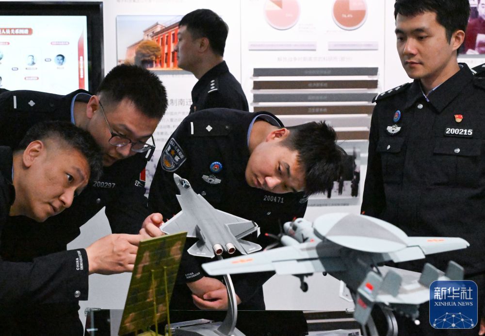 ↑ 4月14日,南京出入境边防检查站的民警在江苏省南京市全国国家安全教育基地参观。新华社发(杨素平摄)