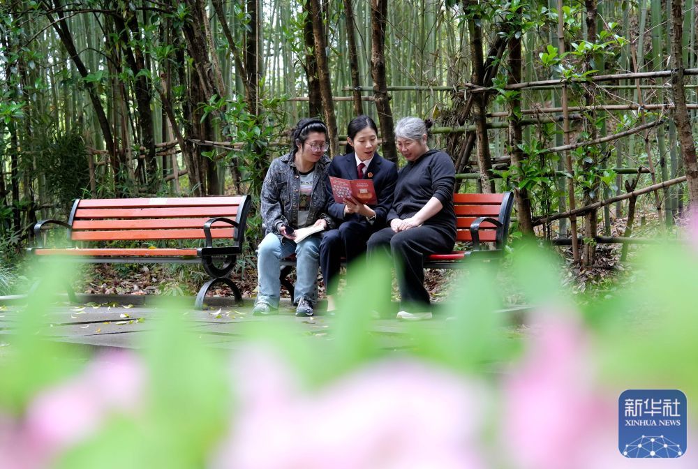 ↑ 4月14日,浙江省德清县人民检察院检察官在法治文化公园给群众讲解国家安全知识。新华社发(谢尚国摄)